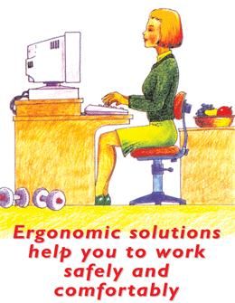 Use this poster to encourage employees to sit comfortably at work stations and to position their keyboard and screen correctly